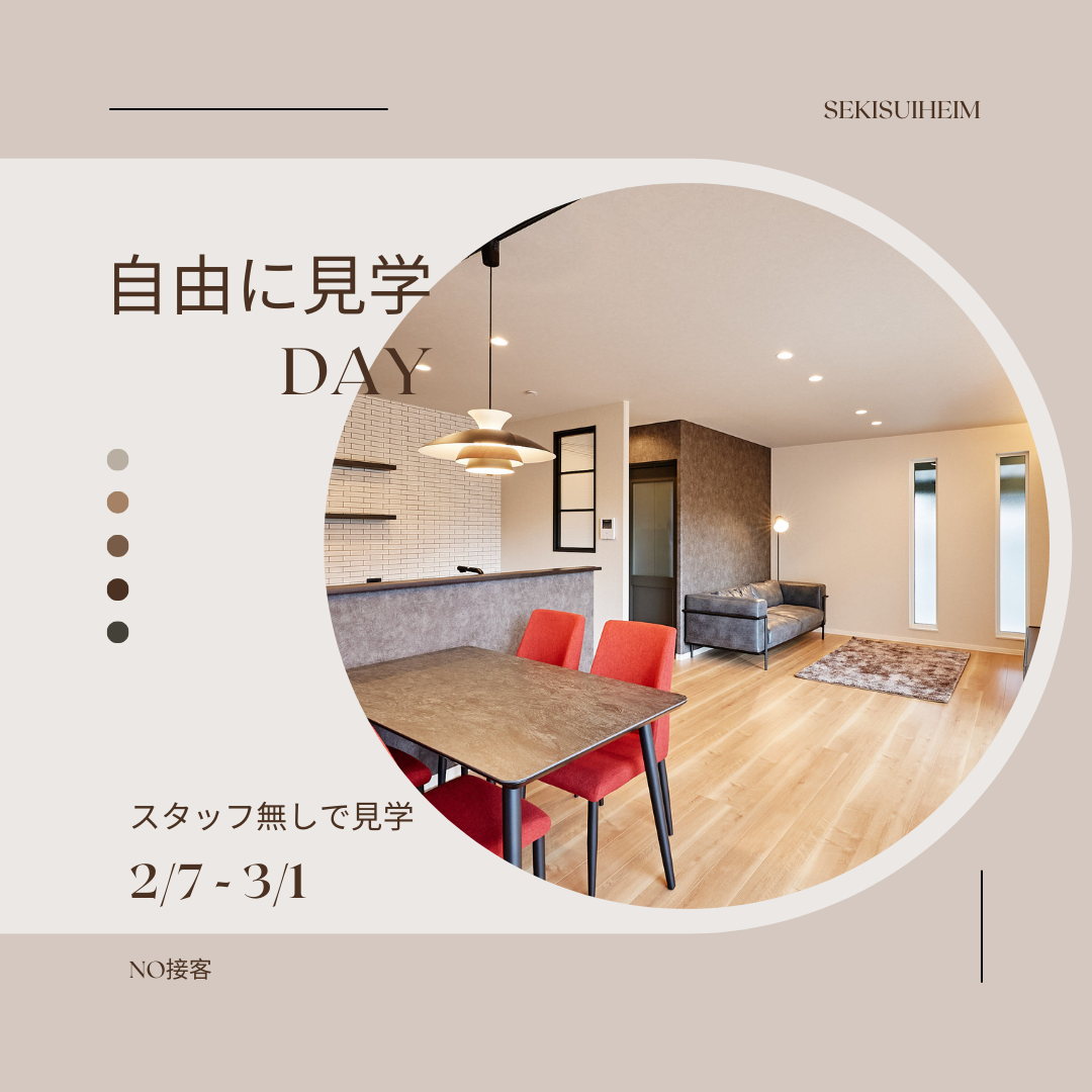 ※「自由に見学DAY」「NO接客!」とはご見学中にスタッフが接客しないことを指しております。もちろん何か気になることや、質問がある際にはお近くのスタッフまでお声掛けいただきますとご対応させていただきます。